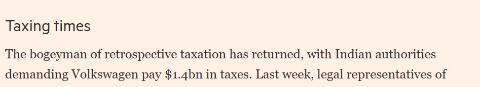Beyond the administrative burden, the old framework suffered from weak contract enforcement. This meant the government could retrospectively modify lease conditions, which it has a long and well-documented affection for. Vodafone and Cairn learned this the hard way, and more recently Volkswagen has joined the list.